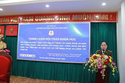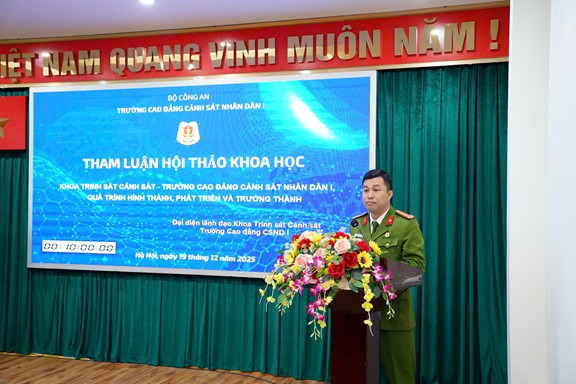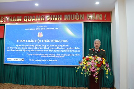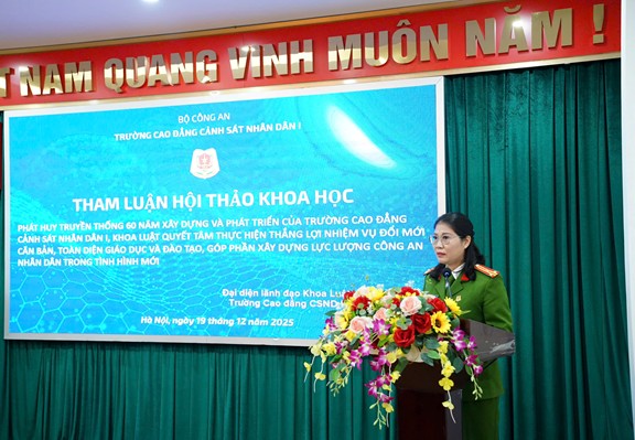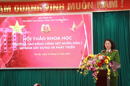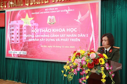Trình bày báo cáo đề dẫn Hội thảo, đồng chí TS, Đại tá Đồng Thị Hồng Nhung, Phó Hiệu trưởng nhà trường nhấn mạnh: năm 2025 là dấu mốc có ý nghĩa đặc biệt, đánh dấu chặng đường 60 năm xây dựng và phát triển của Trường Cao đẳng Cảnh sát nhân dân I - một hành trình bền bỉ, vẻ vang, giàu truyền thống cách mạng, gắn bó mật thiết với sự nghiệp xây dựng, chiến đấu và trưởng thành của lực lượng Cảnh sát nhân dân Việt Nam. Trải qua sáu thập kỷ hình thành và phát triển, Nhà trường luôn kiên định mục tiêu, không ngừng đổi mới, từng bước khẳng định vị thế là một trong những cơ sở đào tạo cán bộ Cảnh sát nhân dân có uy tín trong cả nước.