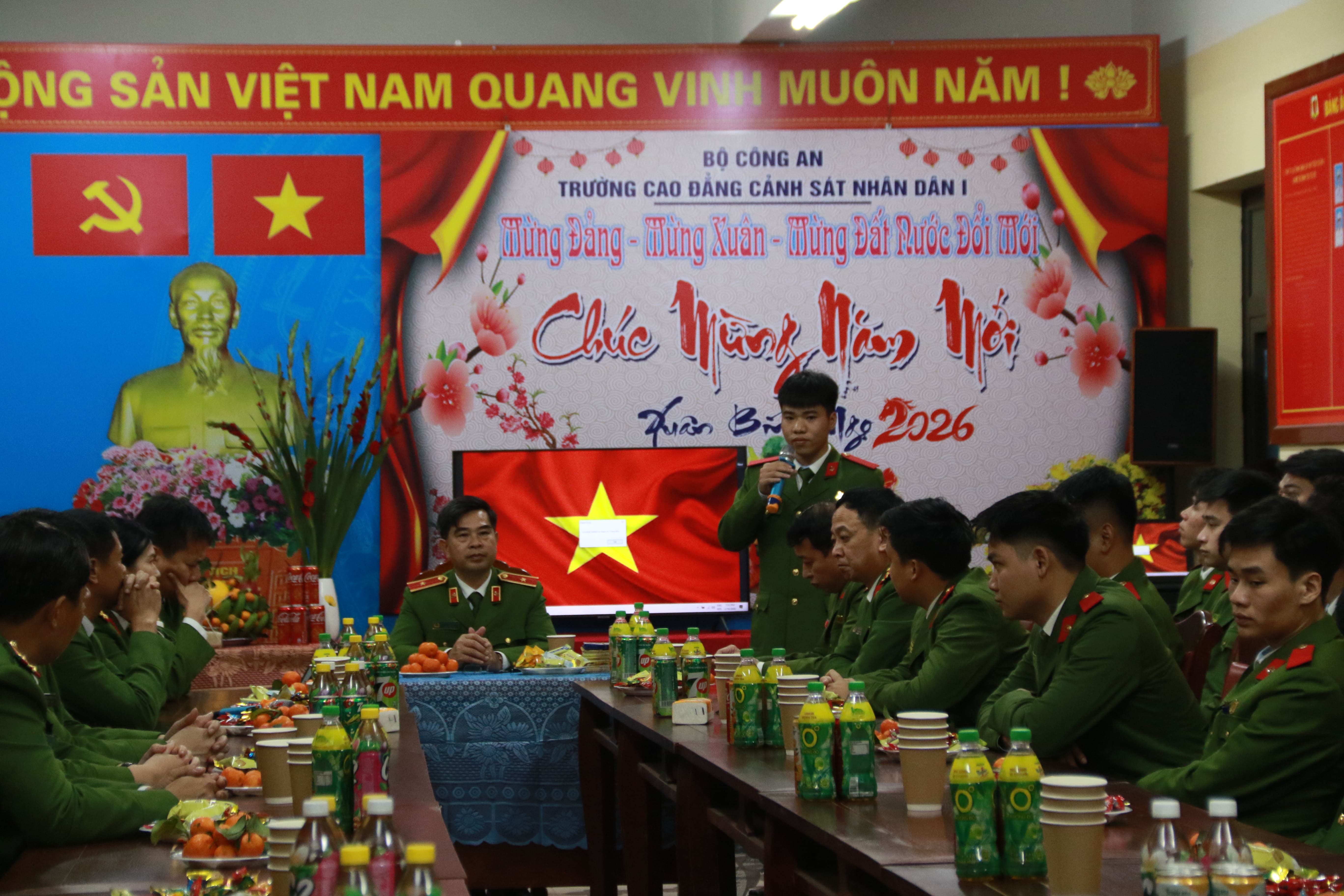 Phát biểu tại chương trình đón giao thừa, đồng chí Hiệu trưởng nhấn mạnh, việc trực Tết là nhiệm vụ quan trọng thể hiện tinh thần trách nhiệm, bản lĩnh, ý chí và tinh thần cống hiến của cán bộ, học viên trong môi trường rèn luyện, học tập. Mỗi ca trực là minh chứng cho tinh thần sẵn sàng nhận và hoàn thành nhiệm vụ, góp phần giữ vững kỷ cương, nề nếp và sự ổn định chung của nhà trường trong dịp Tết Nguyên đán.