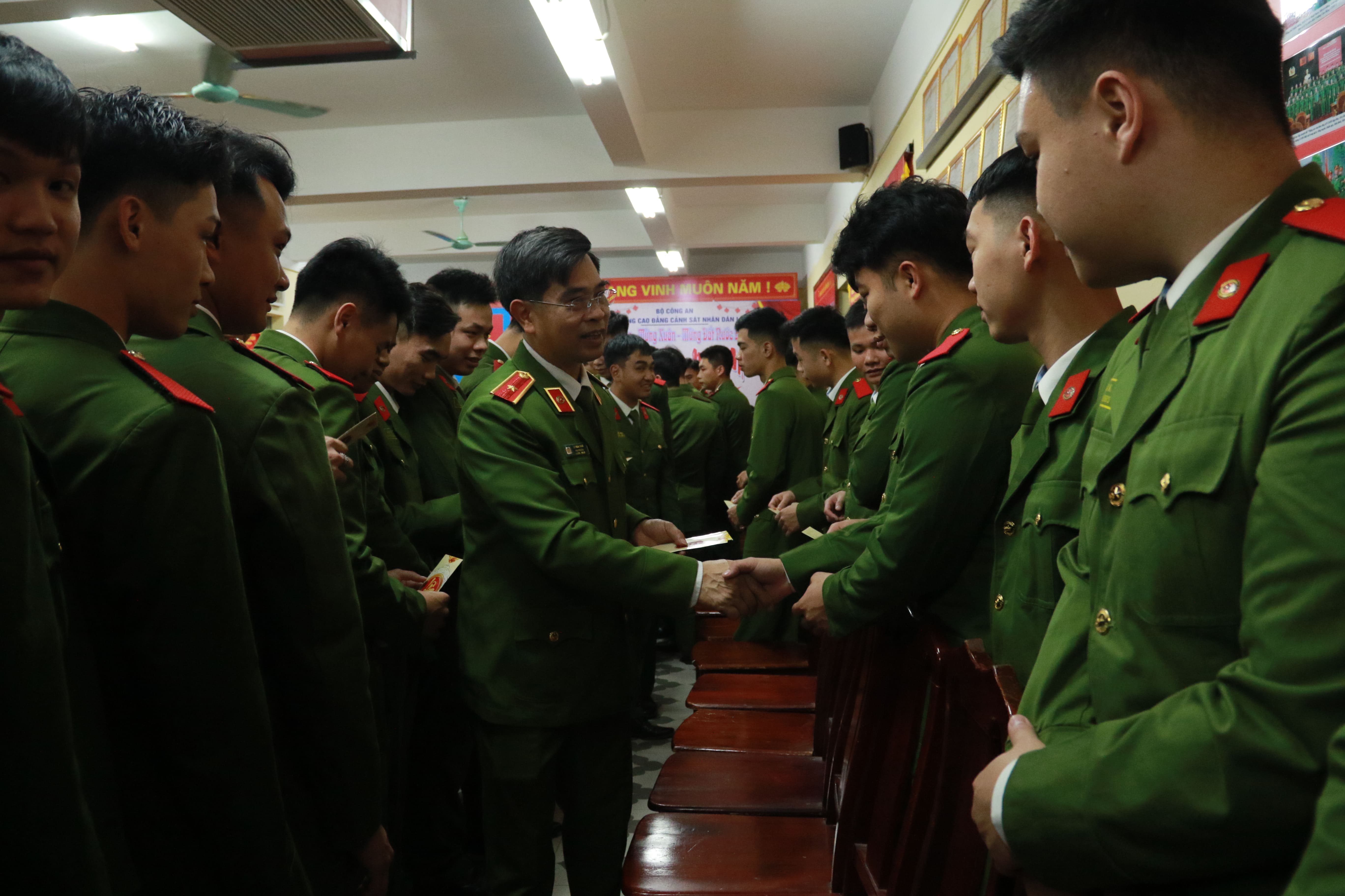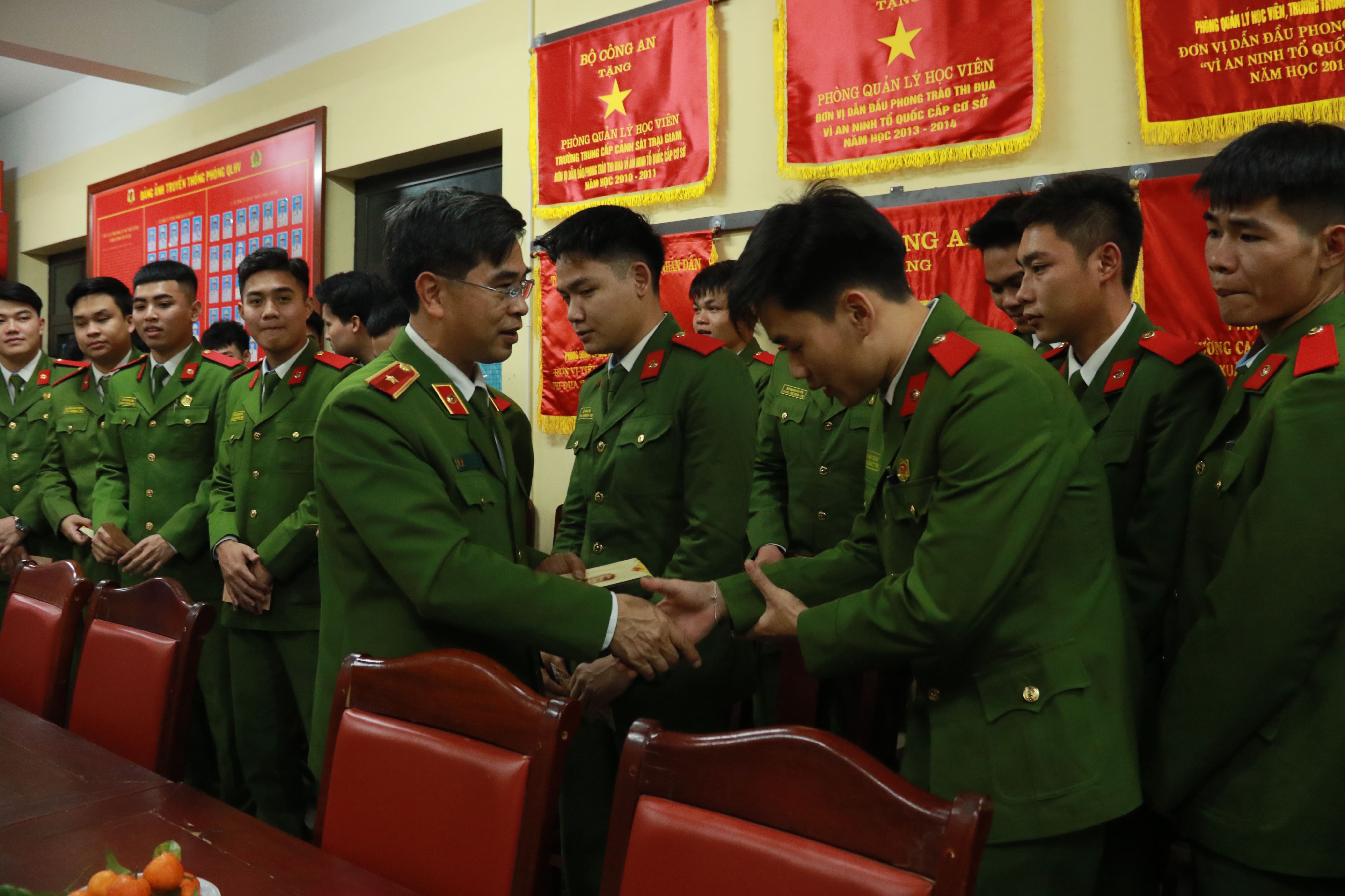 Lãnh đạo nhà trường động viên học viên trực Tết.