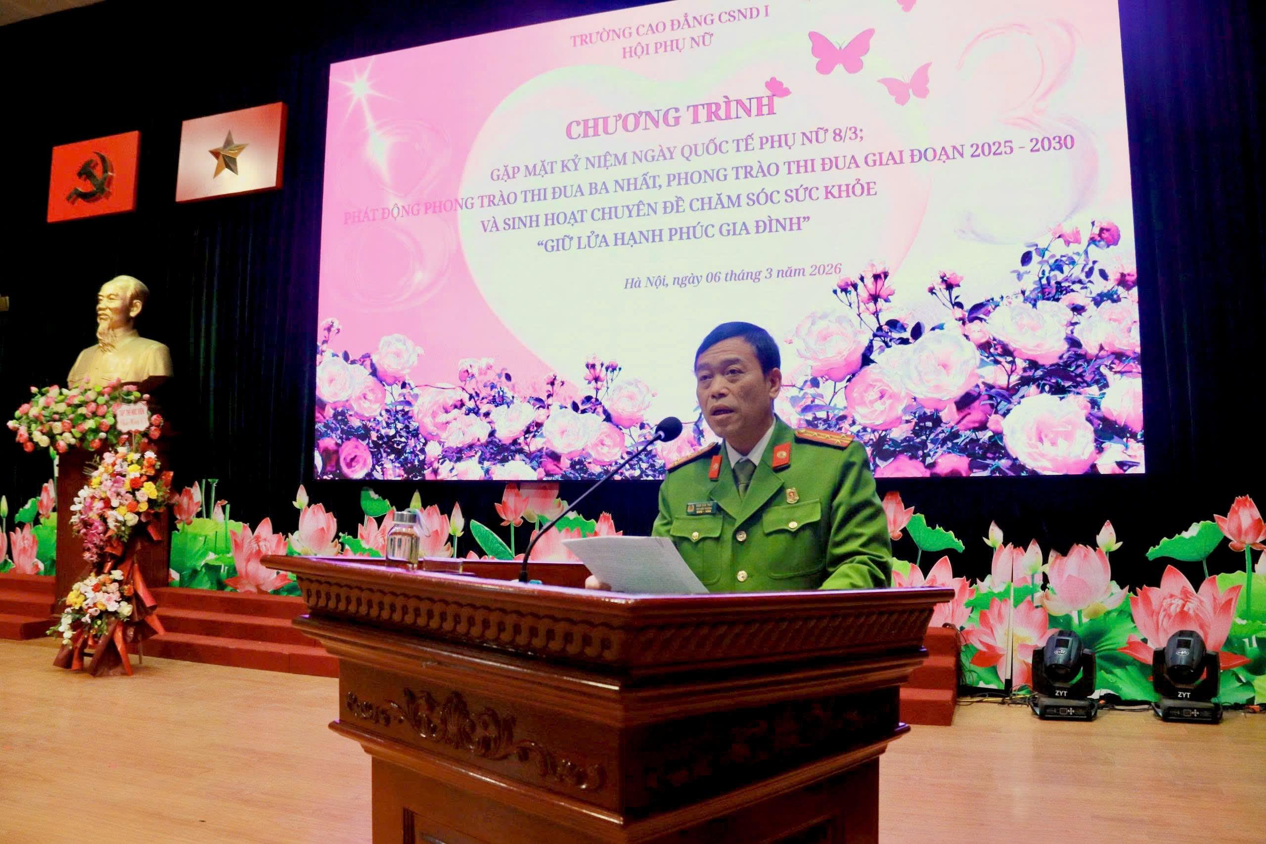 Kỷ niệm 116 năm Ngày Quốc tế Phụ nữ 8/3, ngày 06/3/2026 Trường Cao đẳng CSND I tổ chức chương trình gặp mặt kỷ niệm, phát động phong trào thi đua “Ba Nhất”, phong trào thi đua giai đoạn 2025-2030 và sinh hoạt chuyên đề.