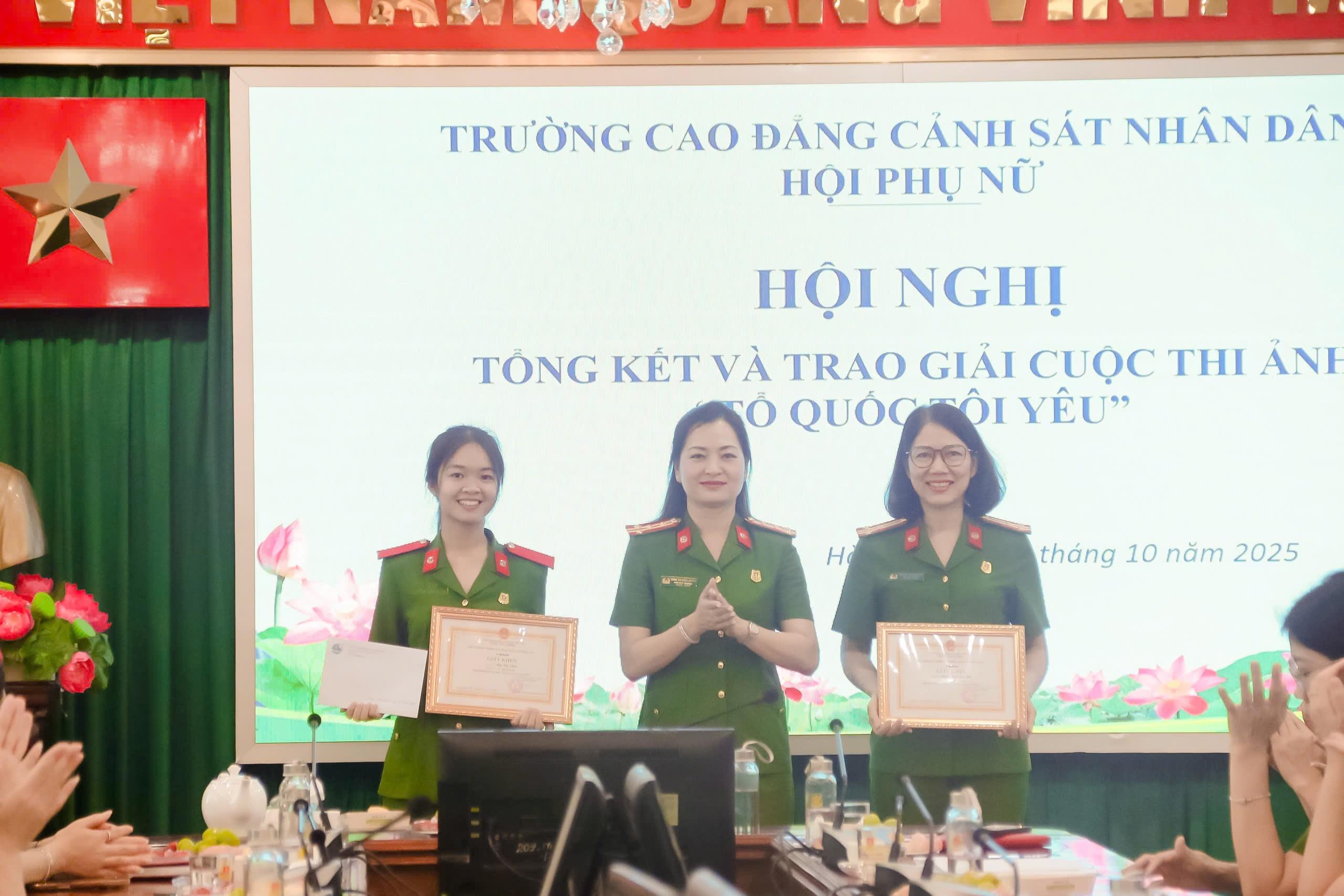 Tại Hội nghị, Ban Tổ chức đã công bố quyết định khen thưởng đối với 06 cán bộ Hội giỏi nhiệm kỳ 2021-2026 và 01 đồng chí là cộng tác viên tích cực của Hội. Đồng thời tổ chức tổng kết, trao giải cuộc thi ảnh “Tổ quốc tôi yêu” năm 2025 với 01 giải cho tập thể Hội xuất sắc nhất; 02 giải Nhất, 05 giải Nhì, 08 giải Ba, 15 giải Khuyến khích ở cả 2 bảng nữ lãnh đạo và nữ cán bộ hội viên. Cuộc thi đã thu hút sự tham gia tích cực của hội viên ở các cấp Hội, góp phần lan tỏa tình yêu quê hương đất nước, niềm tự hào về người chiến sĩ Công an nhân dân trong thời kỳ mới, đem lại khí thế thi đua sôi nổi trước thềm Đại hội đại biểu Phụ nữ nhà trường nhiệm kỳ 2025-2030.