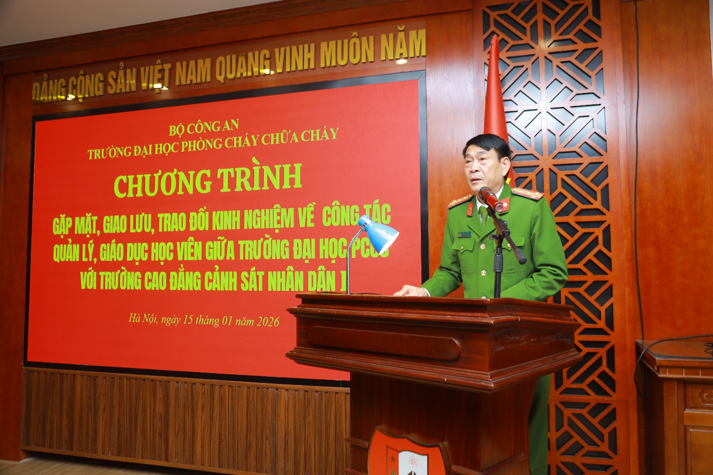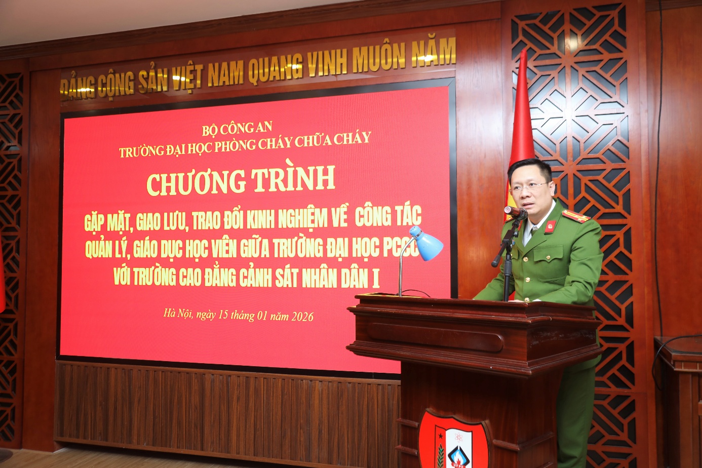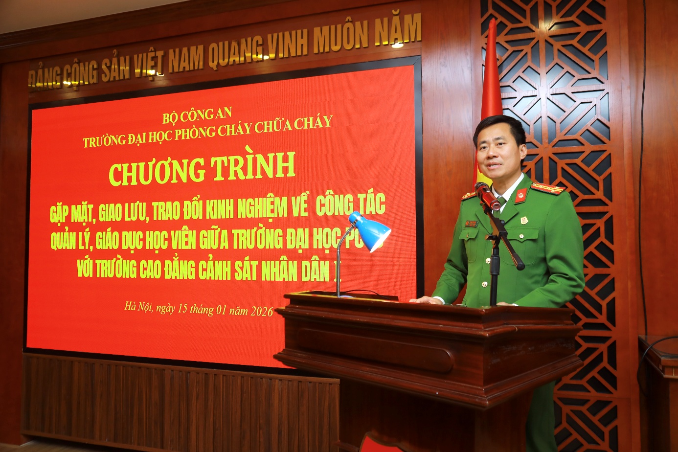 Ngày 15/01/2026, Phòng Quản lý học viên Trường Cao đẳng Cảnh sát nhân dân I phối hợp với Phòng Quản lý học viên của Trường Đại học Phòng cháy chữa cháy tổ chức chương trình triển khai Thông tư ngày 02/12/2025 của Bộ Công an quy định về công tác quản lý, giáo dục học viên các học viện, trường Công an nhân dân và gặp mặt, trao đổi kinh nghiệm, thăm quan học hỏi cách làm hay, mô hình sáng tạo trong công tác quản lý, giáo dục học viên tại Trường Đại học Phòng cháy chữa cháy.
