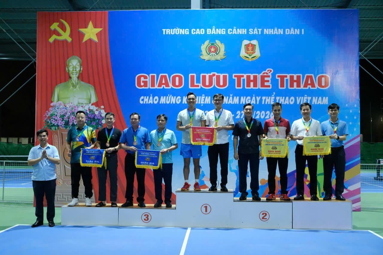 Đồng chí PGS.TS, Thiếu tướng Lê Hoài Nam, Hiệu trưởng trao giải thưởng cho các đồng chí đạt giải nội dung Đôi nam lãnh đạo môn Pickleball.