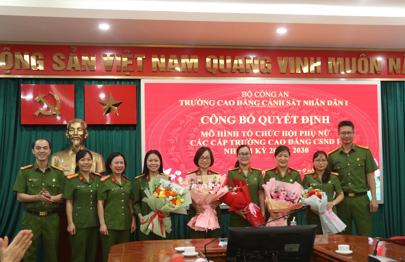 Thực hiện Quyết định của Đoàn Chủ tịch Hội Liên hiệp Phụ nữ Việt Nam về việc ban hành Quy định về tổ chức, hoạt động của Hội Phụ nữ các cấp trong CAND; Công văn của Cục Công tác Đảng và công tác chính trị về việc thông báo chủ trương về công tác cán bộ Hội của Ban Thường vụ Đảng ủy CATW và triển khai thực hiện Quy định về tổ chức, hoạt động của Hội Phụ nữ các cấp trong CAND; ngày 29/9/2025, Trường Cao đẳng CSND I tổ chức Hội nghị công bố các Quyết định về mô hình tổ chức Hội Phụ nữ.