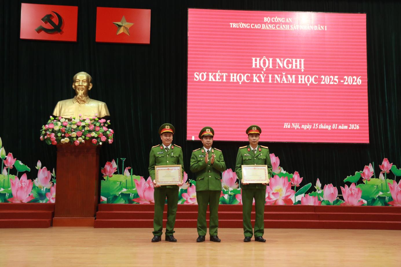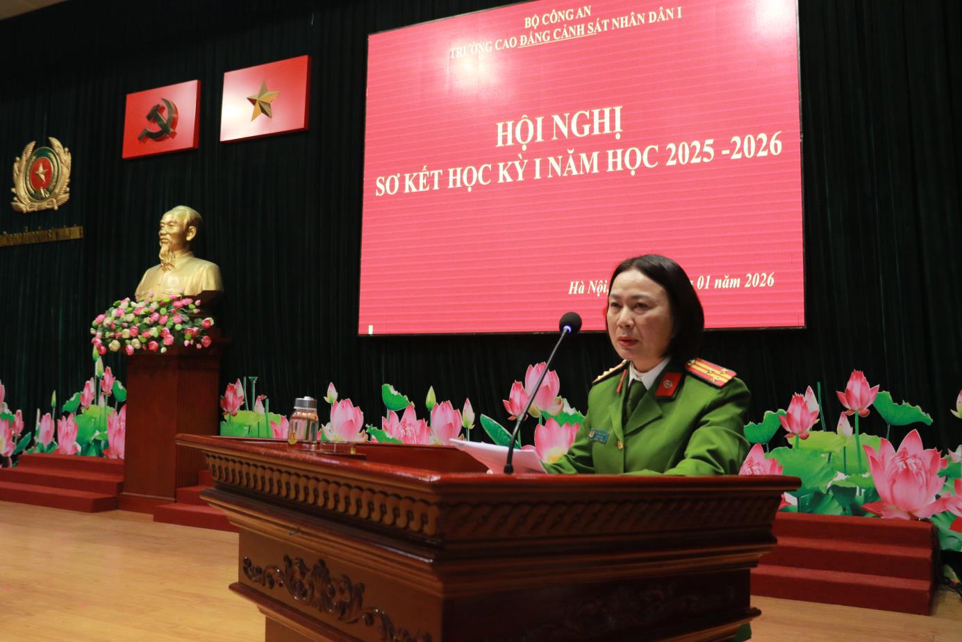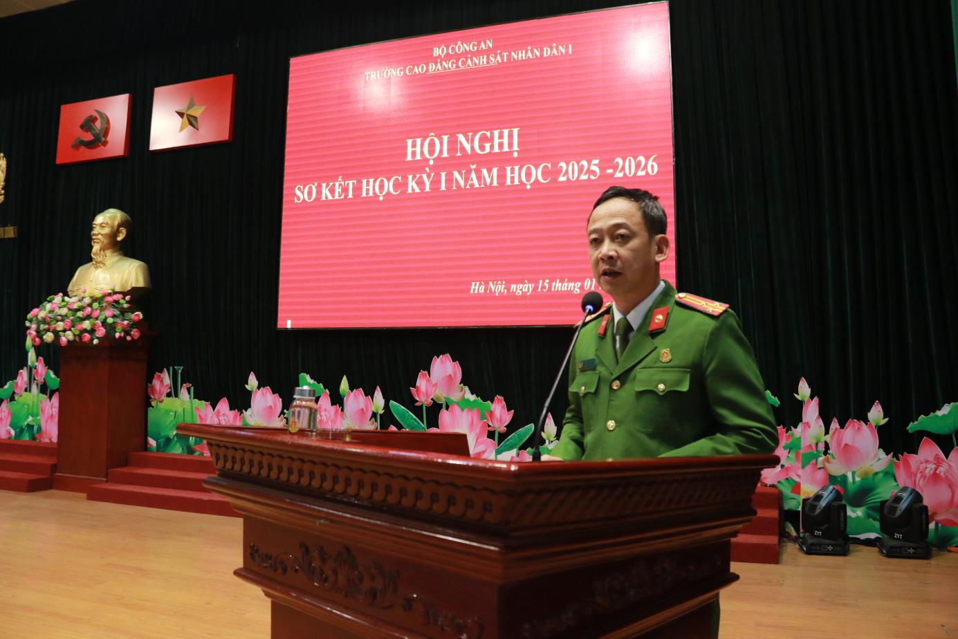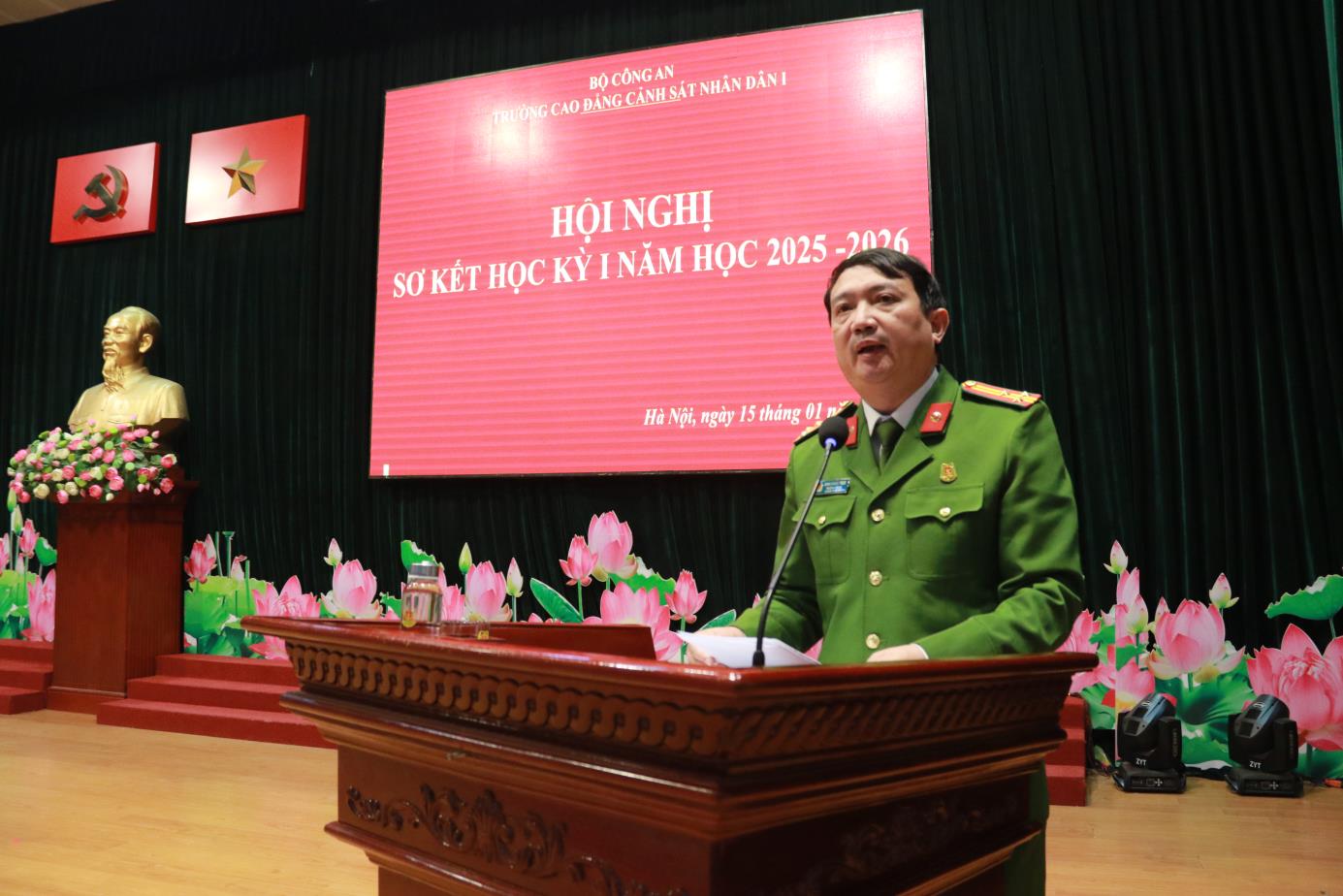 Tại Hội nghị, đồng chí TS, Đại tá Hà Thanh Sơn, Ủy viên Ban Thường vụ Đảng ủy, Phó Hiệu trưởng trình bày Báo cáo tóm tắt kết quả công tác Đảng học kỳ I năm học 2025-2026. Báo cáo đã khẳng định: Học kỳ I năm học 2025-2026 Đảng ủy nhà trường đã lãnh đạo, chỉ đạo triển khai các mặt công tác của Nhà trường theo đúng Chương trình công tác năm học. Nổi bật nhất, lãnh đạo, chỉ đạo tổ chức chuỗi các hoạt động chào mừng kỷ niệm 60 năm Ngày Truyền thống Trường Cao đẳng CSND I và Lễ kỷ niệm trang trọng, ý nghĩa, được Lãnh đạo Bộ Công an đánh giá cao. Đồng thời dưới sự lãnh đạo của Đảng uỷ, Đảng bộ nhà trường đã đạt được những kết quả tích cực trên các lĩnh vực công tác giáo dục đào tạo, nghiên cứu khoa học, đảm bảo chất lượng đào tạo; công tác giáo dục quản lý học viên; công tác hành chính tổng hợp; công tác hậu cần, đời sống; công tác xây dựng Đảng, xây dựng lực lượng ...