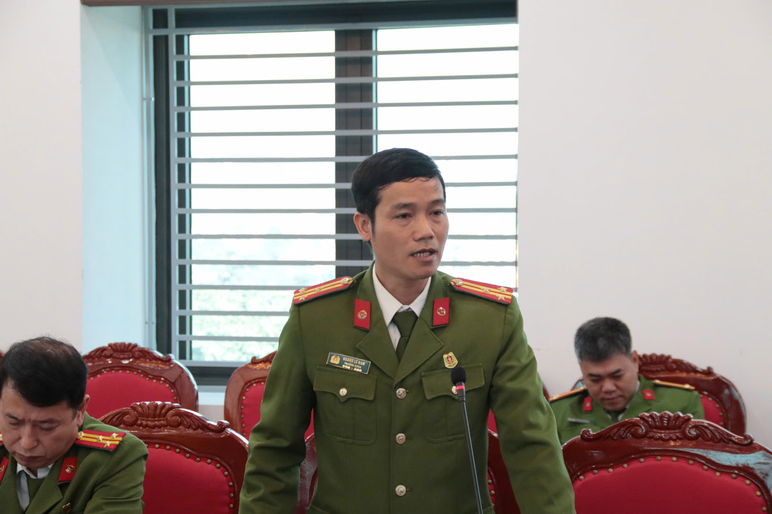 Đồng chí TS, Thượng tá Hoàng Lê Nam, Trưởng khoa Quản lý hành chính phát biểu tham luận.