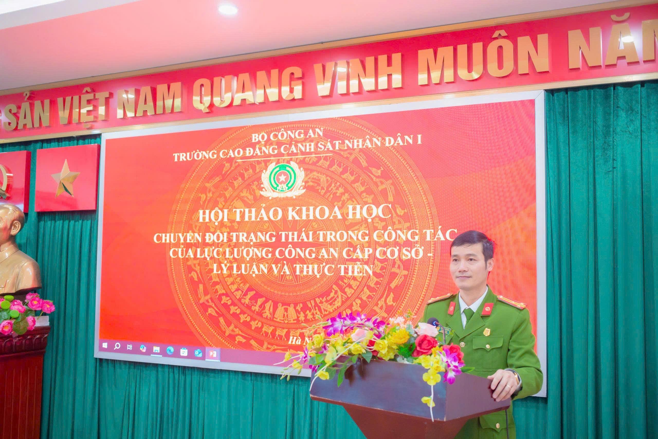 Phát biểu đề dẫn và khai mạc Hội thảo, đồng chí TS, Thượng tá Hoàng Lê Nam, Trưởng khoa Quản lý hành chính về trật tự xã hội nhấn mạnh: Việc chuyển đổi trạng thái công tác, chiến đấu của lực lượng CAND trên nền tảng số, công nghệ số tiên tiến không chỉ là việc thay đổi công cụ làm việc mà còn là sự chuyển đổi căn bản trong tư duy, phương pháp tổ chức và thực hiện nhiệm vụ dựa trên các nền tảng công nghệ số hiện đại. Đây là quá trình số hóa, tự động hóa và thông minh hóa toàn bộ quy trình công tác nhằm tạo ra sự linh hoạt, hiệu quả và kịp thời trong xử lý các tình huống ANTT. Yêu cầu, nhiệm vụ này được đặt ra đối với toàn lực lượng, với tất cả các đơn vị, các cấp Công an. Đặc biệt đối với lực lượng Công an cấp cơ sở.