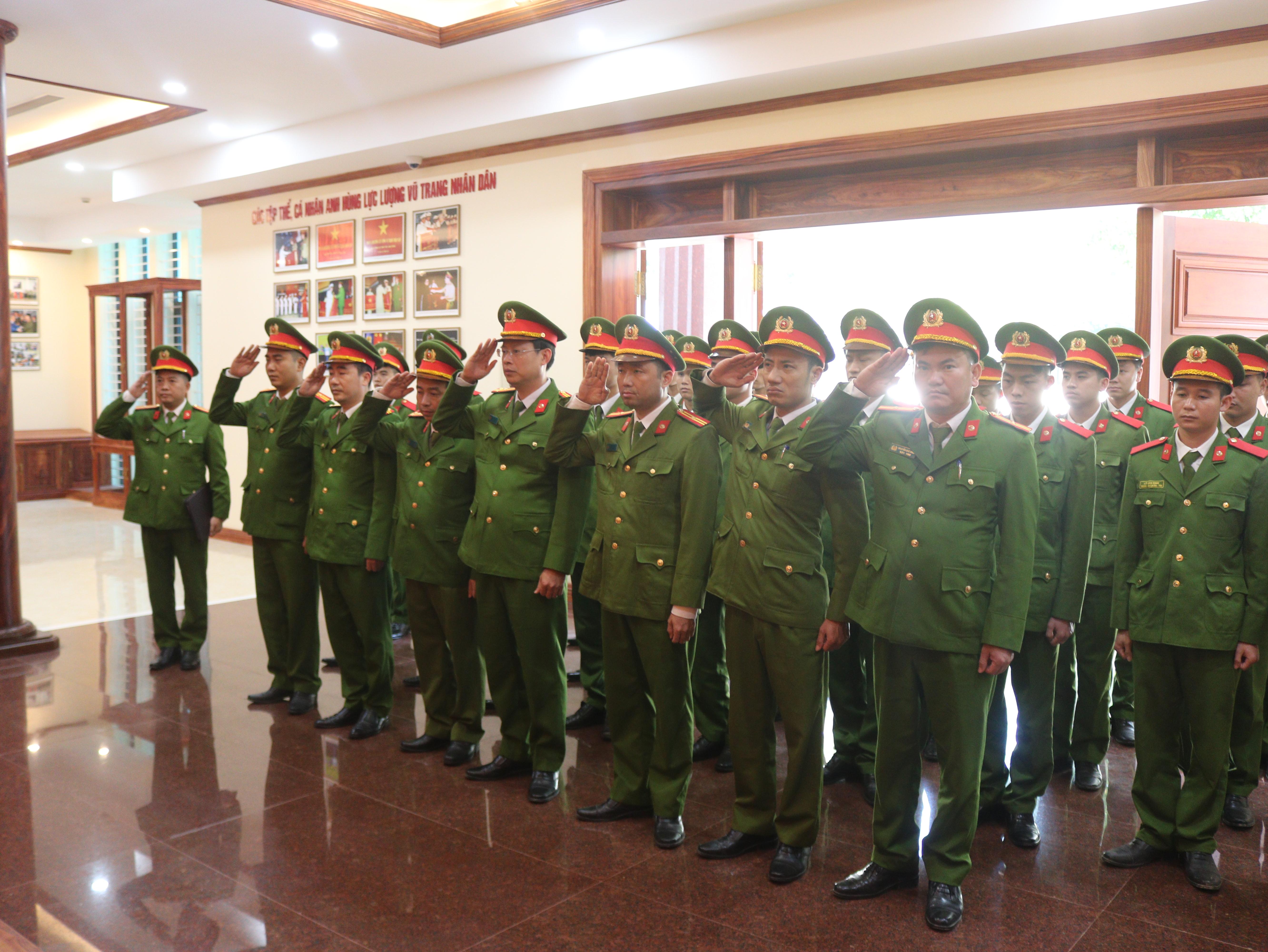 Tại buổi tham quan, đoàn công tác đã tổ chức dâng hoa, dâng hương trước bàn thờ Chủ tịch Hồ Chí Minh tại Phòng Truyền thống của Công an tỉnh Thanh Hóa và trước tượng đài anh hùng lực lượng vũ trang nhân dân, liệt sỹ Nguyễn Thị Lợi trong khuôn viên Công an tỉnh. .jpg)