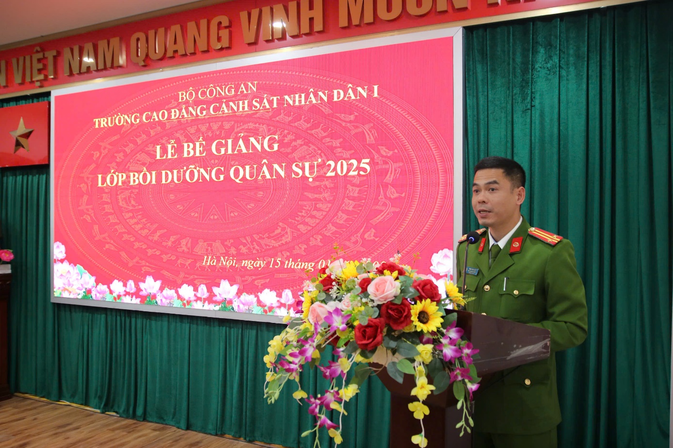 Thực hiện Chương trình công tác năm học 2025 - 2026, sáng ngày 15/12/2026, Trường Cao đẳng CSND I tổ chức Lễ Bế giảng lớp Bồi dưỡng quân sự năm 2025.