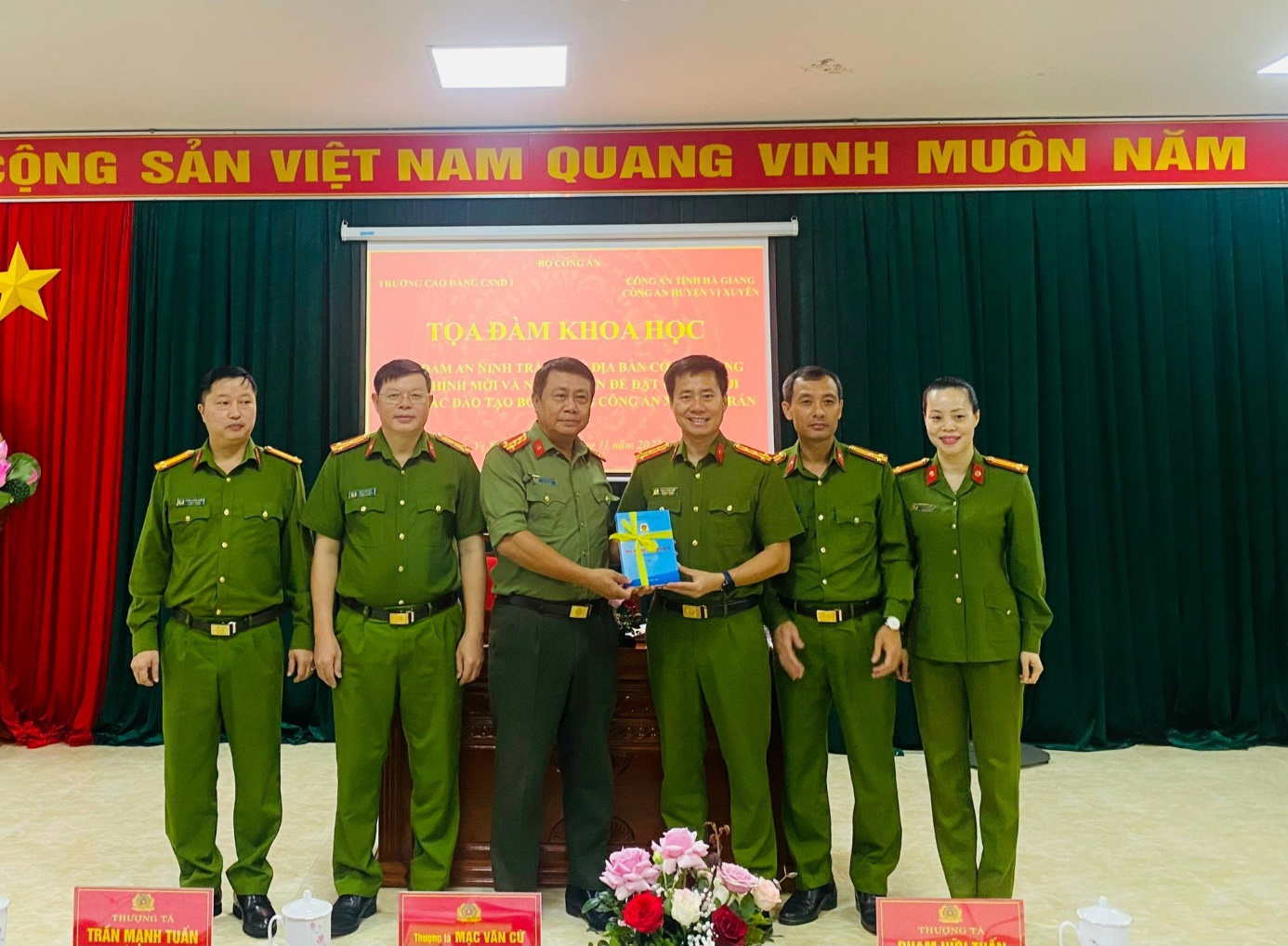 Các đồng chí lãnh đạo cùng giáo viên Khoa Cảnh sát phòng, chống tội phạm về ma túy chụp ảnh lưu niệm tại Hội thảo khoa học.