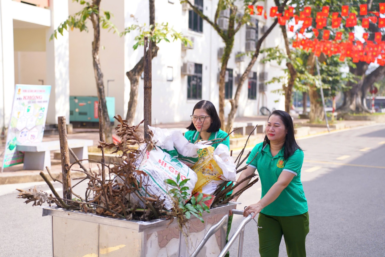 Ngay sau chương trình phát động, toàn thể cán bộ, giáo viên và học viên Nhà trường đã ra quân thu gom rác thải nhựa, làm sạch khuôn viên nhà trường.