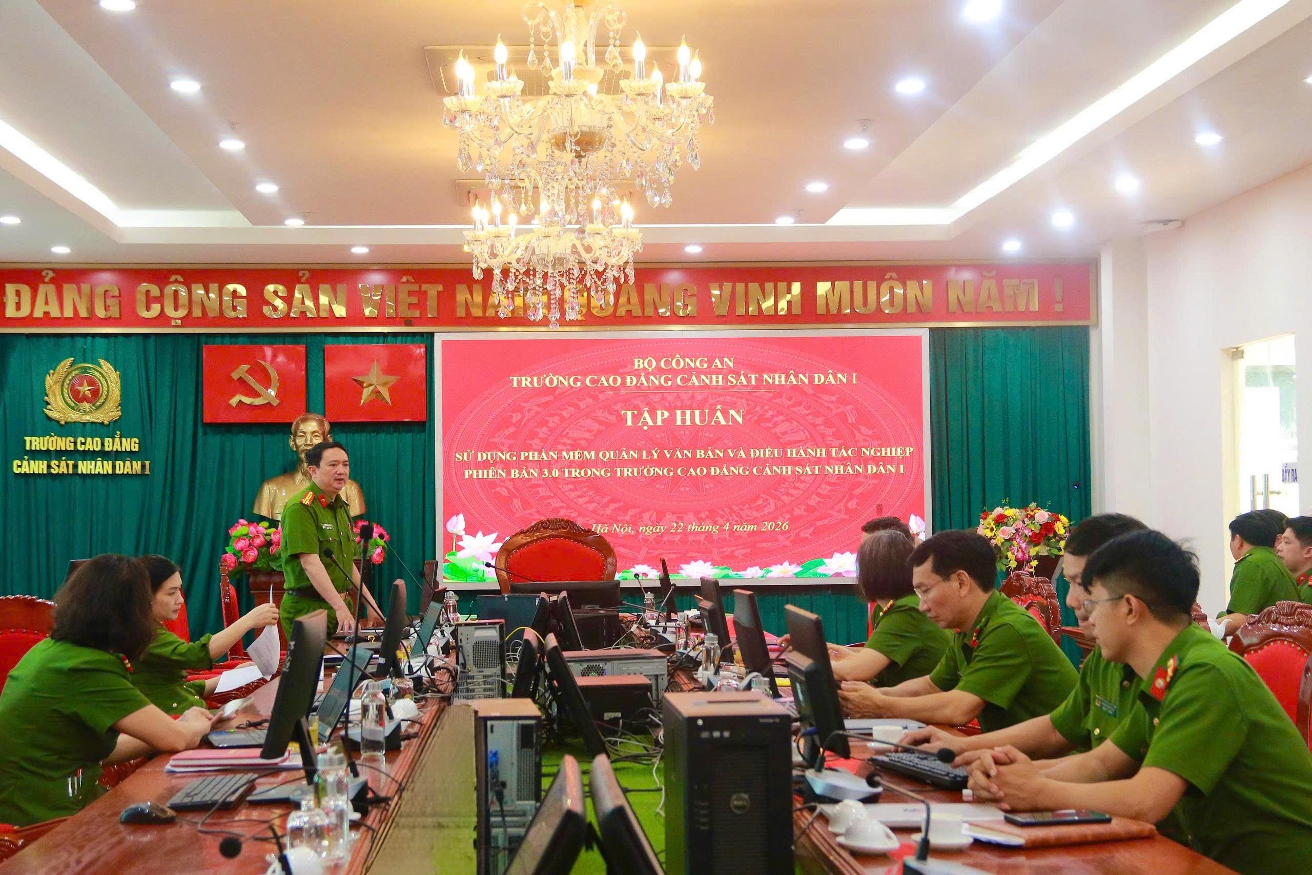 Từ ngày 22/4/2026 đến ngày 24/4/2026, Trường Cao đẳng CSND I tổ chức tập huấn Sử dụng phần mềm quản lý văn bản và điều hành tác nghiệp phiên bản 3.0.