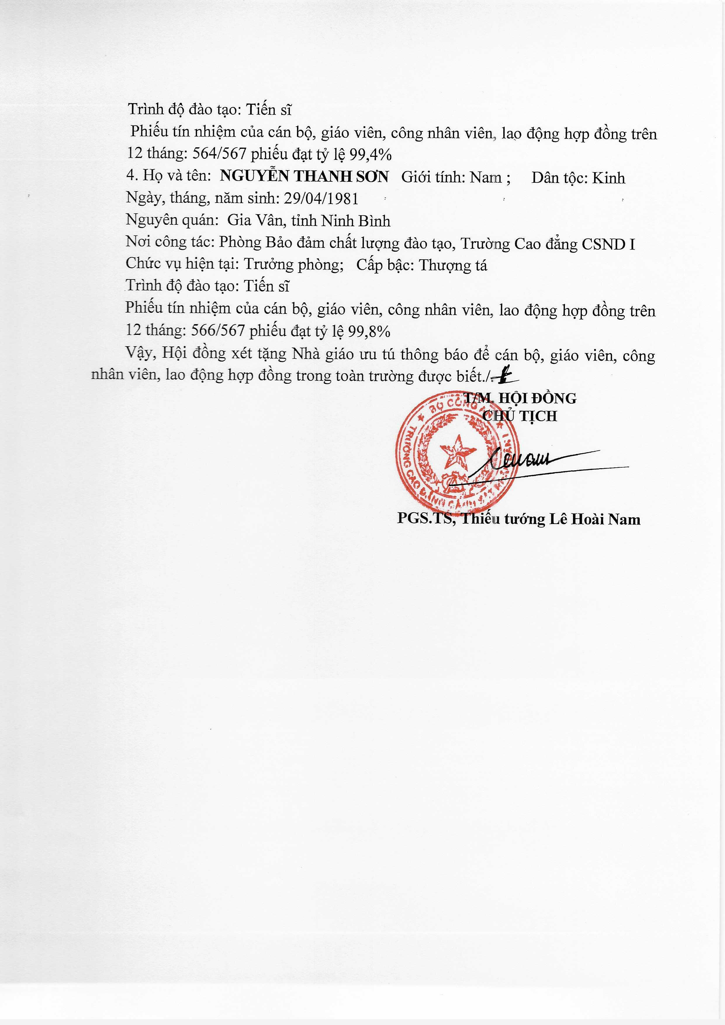 Trường Cao đẳng CSND I thông báo xét tặng Danh hiệu NGND, NGƯT lần thứ 17 năm 2026