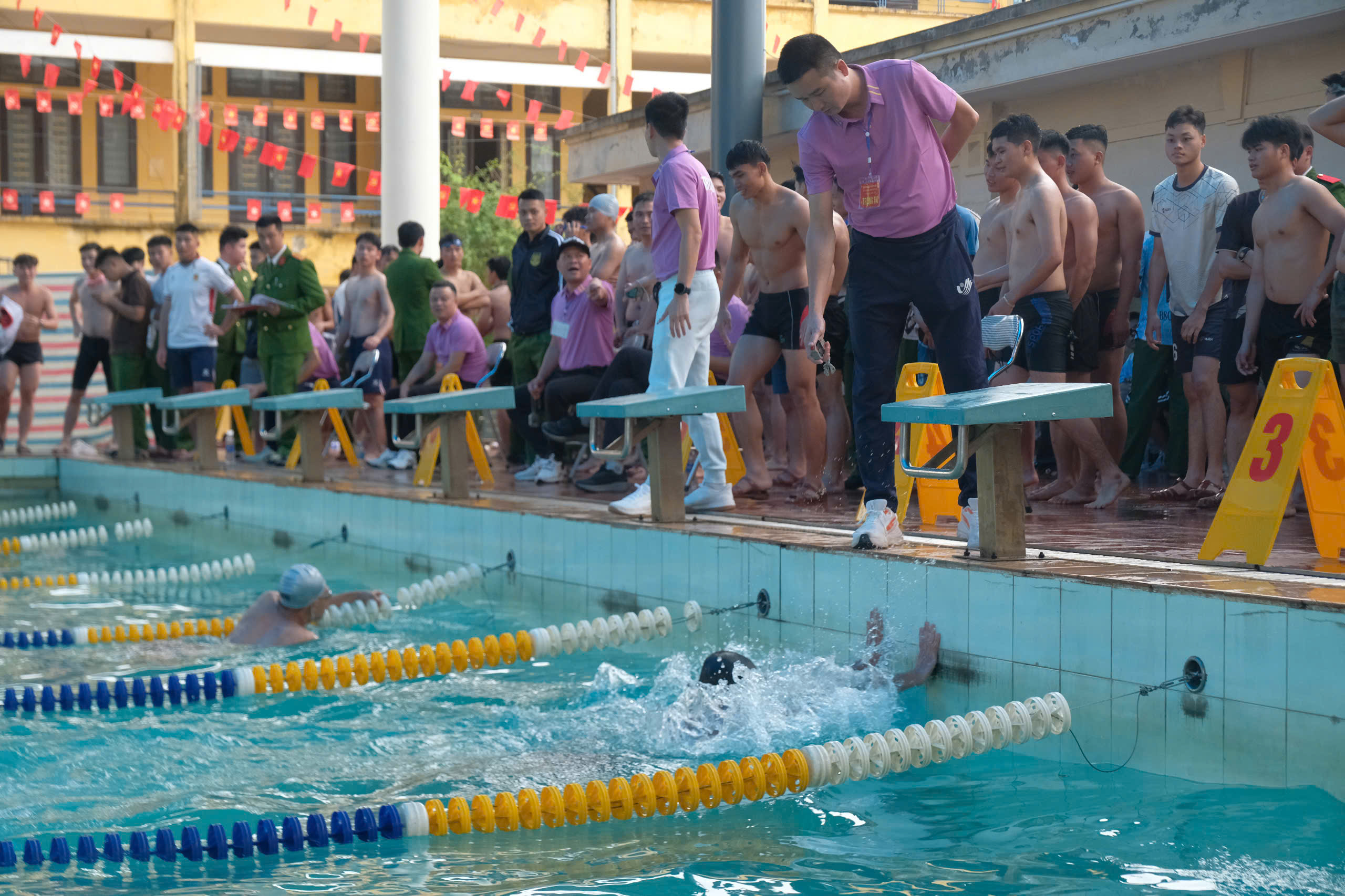 Thực hiện Kế hoạch ban hành ngày 23/10/2025, Giải bơi khối học viên Khóa K61S được tổ chức với mục tiêu nâng cao thể lực, rèn luyện kỹ năng bơi lội, đồng thời tuyển chọn những học viên có tố chất để bồi dưỡng, bổ sung vào đội tuyển tham gia các giải thể thao do Bộ Công an tổ chức. Đây cũng là dịp để các lớp, các học viên giao lưu, học hỏi, thắt chặt tinh thần đoàn kết, qua đó xây dựng môi trường học tập - rèn luyện giàu năng lượng, văn minh và hiệu quả.