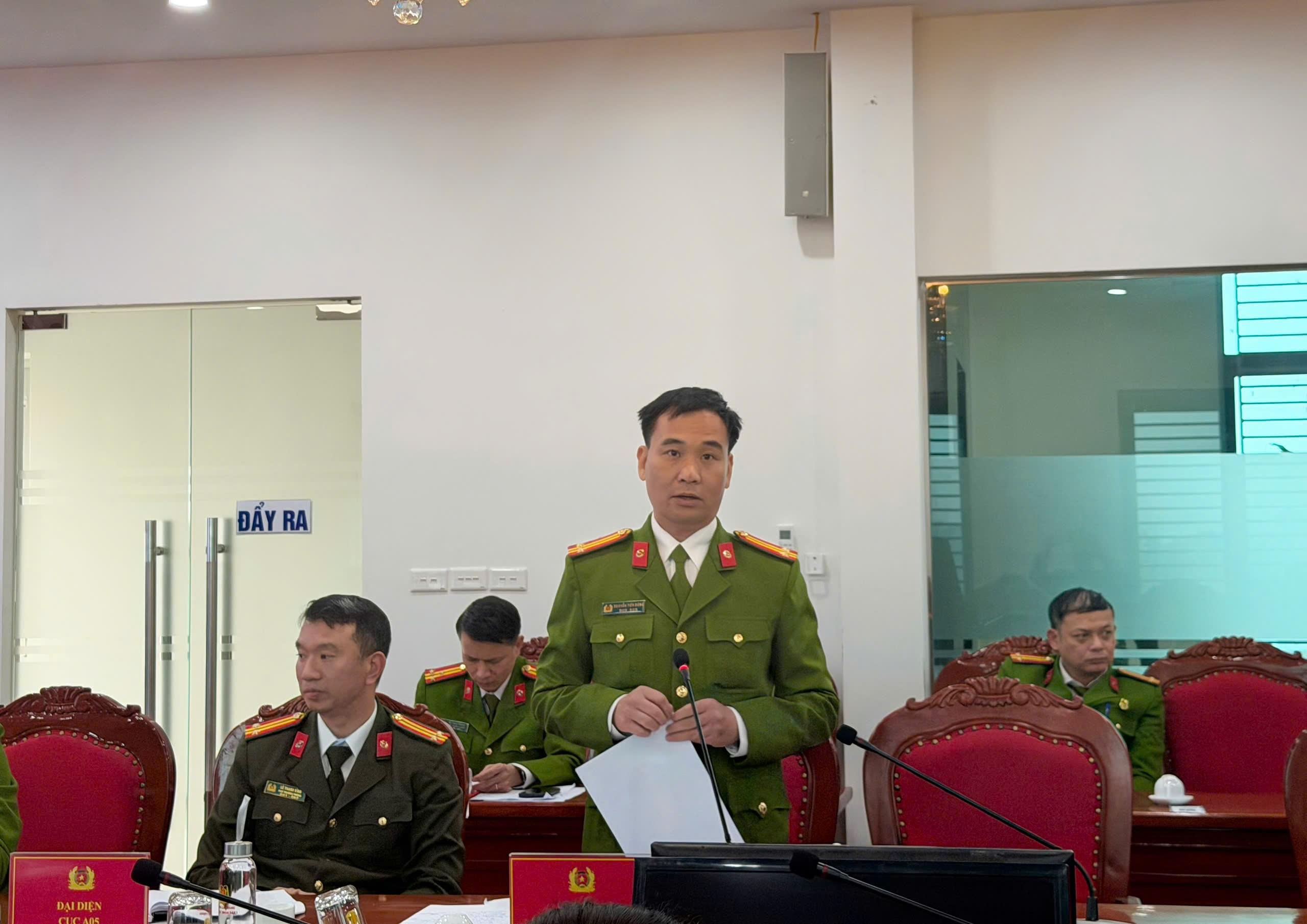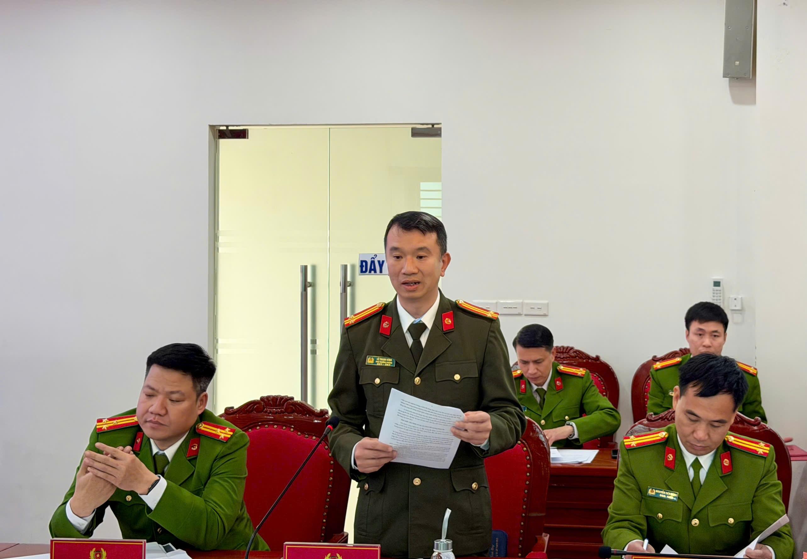 Đồng chí Thượng tá Đinh Xuân Thực, Trưởng phòng Hành chính tổng hợp, điều hành phần thảo luận.