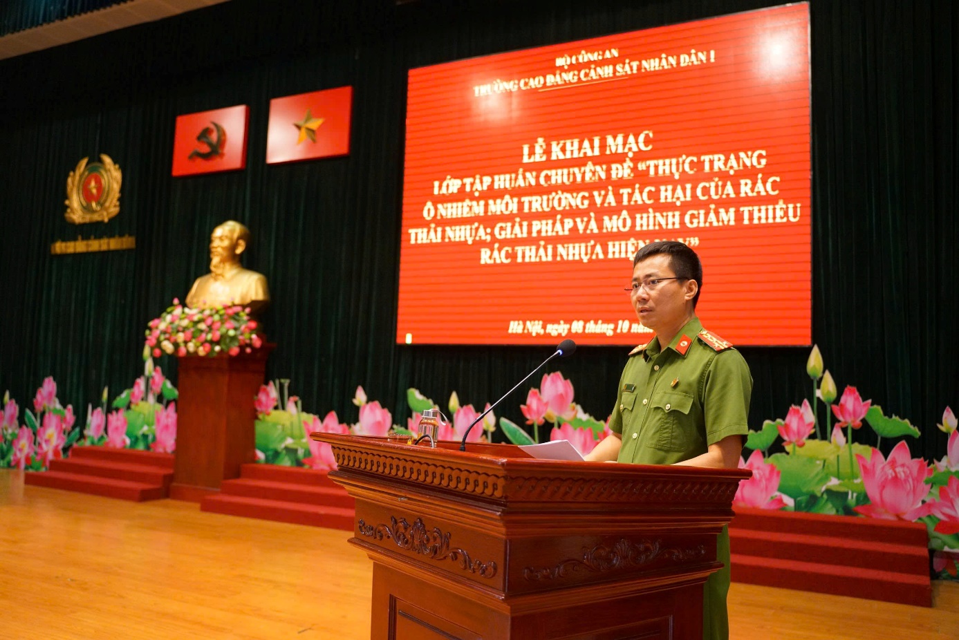 Phát biểu tại buổi tập huấn, đồng chí TS, Đại tá Phạm Tuấn Hiệp, Phó Hiệu trưởng nhấn mạnh: Rác thải nhựa hay còn gọi là “ô nhiễm trắng”, đang trở thành hiểm họa rình rập, sẵn sàng giết chết môi trường toàn cầu nếu chúng ta không hành động kịp thời. Việc giảm thiểu rác thải nhựa là nhiệm vụ chung của toàn xã hội trong đó cán bộ, chiến sỹ Công an nhân dân phải là tấm gương trong việc thực hiện nếp sống văn minh, tiết kiệm, thân thiện với môi trường. Buổi tập huấn nhằm tuyên truyền, nâng cao nhận thức cho cán bộ, giáo viên, học viên nhà trường về tác hại của rác thải nhựa và trách nhiệm cá nhân trong công tác bảo vệ môi trường, thay đổi thói quen sử dụng nhựa dùng một lần, tích cực tham gia phong trào “Làm sạch môi trường, nói không với rác thải nhựa”, góp phần xây dựng hình ảnh người chiến sĩ Công an nhân dân “Vì nước quên thân, vì dân phục vụ”, có trách nhiệm với môi trường và xã hội.