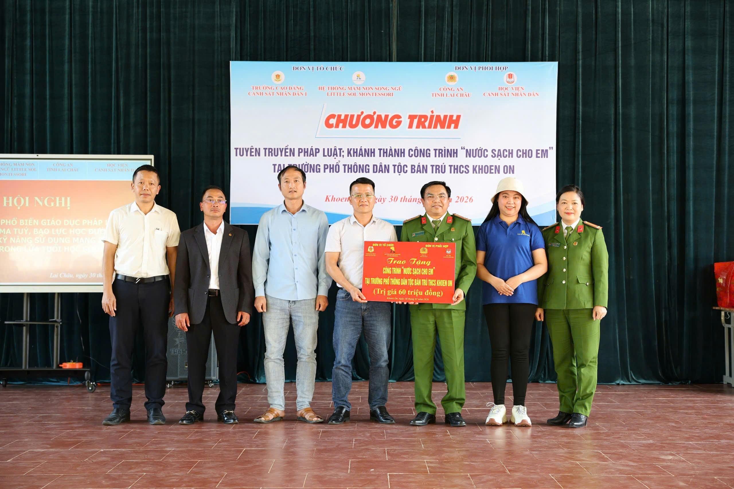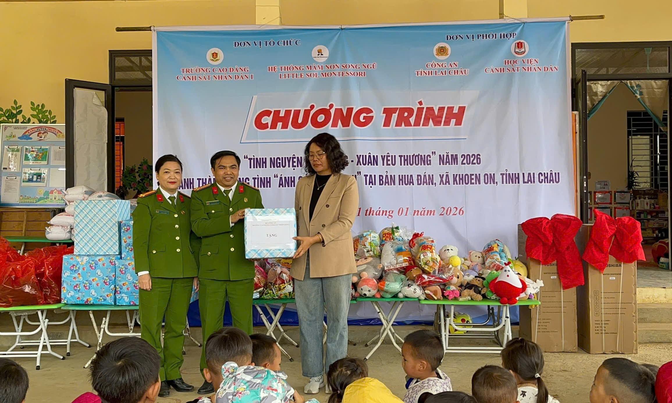 Đoàn công tác do đồng chí TS, Thượng tá Vũ Hồng Thắng, Phó Trưởng phòng Hành chính tổng hợp làm Trưởng đoàn, đại diện Đoàn Thanh niên, Hội Phụ nữ nhà trường; cùng sự đồng hành phối hợp của Hệ thống Mầm non song ngữ Little Sol Montessori, Học viện Cảnh sát nhân dân, Công an tỉnh Lai Châu cùng chính quyền cơ sở.