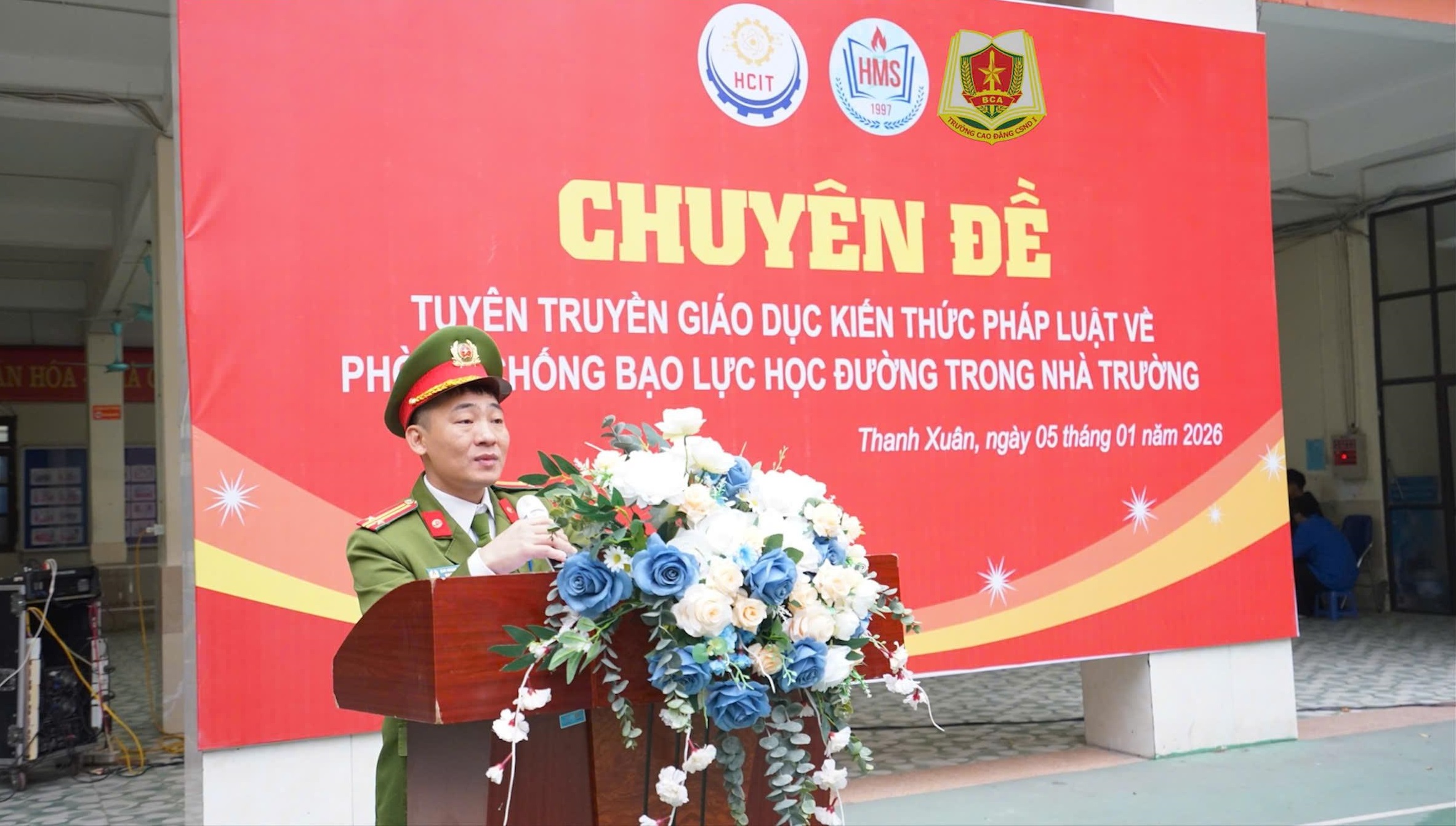 Ngày 05/01/2026 Trường Cao đẳng CSND I phối hợp với Trường Cao đẳng Công thương Hà Nội tổ chức buổi tuyên truyền, giáo dục pháp luật về “Phòng, chống bạo lực học đường trong học sinh, sinh viên” cho học sinh khổi THPT của Trường Cao đẳng Công thương Hà Nội.