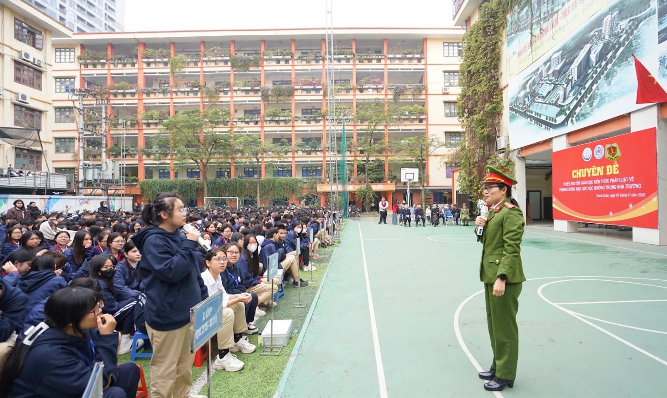 Buổi tuyên truyền diễn ra trong không khí sôi nổi với sự tham gia giao lưu, đặt câu hỏi và chia sẻ tình huống thực tế từ phía các em học sinh. Thông qua buổi tuyên truyền góp phần nâng cao nhận thức cho các em học sinh về tình trạng bạo lực học đường hiện nay, các hình thức bạo lực phổ biến và hậu quả để lại cho nạn nhân cũng như người vi phạm. Qua đó, giúp các em nhận thức rõ hơn về tầm quan trọng của việc xây dựng môi trường học đường an toàn, lành mạnh và thân thiện.