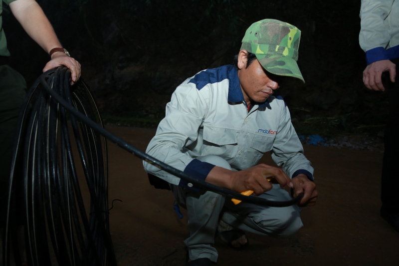 Lực lượng kỹ thuật của MobiFone triển khai sửa chữa, đấu nối hạ tầng viễn thông.