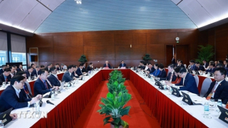 Sáng 22/1, theo chương trình làm việc của Đại hội đại biểu toàn quốc lần thứ XIV của Đảng, đồng chí Lương Cường, Uỷ viên Bộ Chính trị, Chủ tịch nước, Chủ tịch Hội đồng Quốc phòng và An ninh, Thống lĩnh các lực lượng vũ trang nhân dân đã tới dự buổi làm việc tại Đoàn đại biểu Đảng bộ Công an Trung ương.