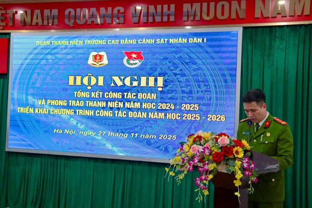 Kết thúc hội nghị, thay mặt Ban Chấp hành Đoàn Trường, đồng chí Võ Hữu Vũ trân trọng tiếp thu ý kiến chỉ đạo của lãnh đạo Nhà trường và Đoàn cấp trên; đồng chí bày tỏ mong muốn cán bộ, đoàn viên, thanh niên toàn trường phát huy tinh thần xung kích, sáng tạo, đoàn kết, thi đua hoàn thành xuất sắc các nhiệm vụ năm học 2025 - 2026 và hưởng ứng mạnh mẽ đợt thi đua chào mừng 60 năm Truyền thống Trường Cao đẳng CSND I.